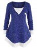 Plus Size Space Dye Chest Pocket Round Hem Tunic Tee