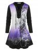 Plus Size Lace up Flower Ombre V Notch Tunic Tee