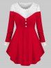 Plus Size Christmas Velvet Lace Sheer Yoke Curved Hem Tee