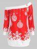 Plus Size Christmas Skew Neck Snowflake Ball Print Sweatshirt