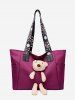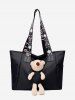 Plush Bear Floral Print Strap Tote Bag