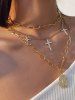 3Pcs Cross Rhinestone Engraved Pendant Necklace Set