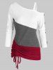 Colorblock Cold Shoulder Drawstring Hem Knitted T Shirt