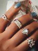 4Pcs Eye Teardrop Rhinestone Hollow Ring Set