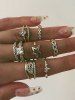 8 Pcs Rhinestone Leaf Heart Star Ring Set