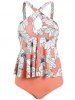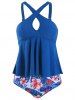 Floral Leaves Print Criss Cross Keyhole Tankini Swimwear