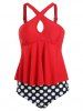 Polka Dot Stripes Criss Cross Keyhole Tankini Swimwear