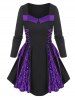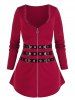 Plus Size Grommet Zip Up Lace Panel Tunic Tee