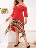Plus Size Christmas Cold Shoulder Plaid Asymmetric Dress