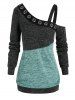 Plus Size Skew Collar Cold Shoulder Space Dye Grommet Tee