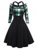 Plaid Knee Length Suspender Skirt Set