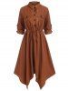 Roll Tab Sleeve Flap Pockets Asymmetric Shirt Dress