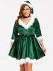 Plus Size Faux Fur Panel Velvet Christmas Party Dress with Hat