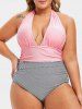 Plus Size Plunge Striped Backless One piece Swimsuit