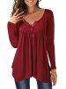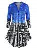 Plus Size Abstract Print Placket Curved Hem Tunic Tee