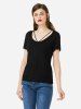 Plus Size Contrast Tunic Lace Up Sweetheart Collar T Shirt