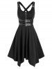 Half Zip Buckle Strap Sleeveless Handkerchief Dress
