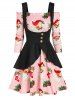 Christmas Santa Claus Polka Dot Print Dress and Peplum Vest