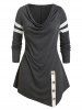 Plus Size Asymmetric Cowl Neck Contrast Trim Tee