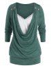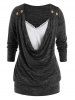 Plus Size Draped Cowl Front Lace Panel Blouson Tunic Tee