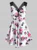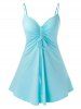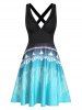 Flower Print Criss Cross Ruched Button Embellished Tank Dress