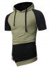 Hooded Zipper Slit Asymmetric Contrast T shirt