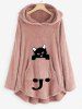 Plus Size High Low Cat Pattern Plush Hoodie