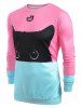 Color Block Black Cat Print Sweatshirt