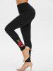 High Waisted Flower Embroidered Lace Insert Leggings