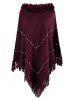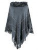 Plus Size Beaded Faux Fur Fringed Poncho Sweater