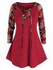 Plus Size Christmas Plaid Snowflake Lace up Knitted Tee