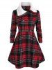 Plus Size Checked Faux Fur Collar Skirted Tunic Coat