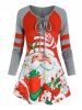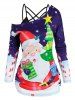 Christmas Santa Claus Gifts Print Lace up T shirt
