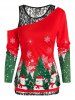 Christmas Printed Skew Neck Tee and Lace Tank Top Twinset