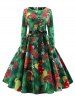 Christmas Gift Print Long Sleeve Belted Dress