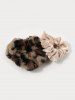 2Pcs Leopard Fluffy Faux Pearl Velour Scrunchie Set