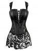 Lace Up Back Zipper Faux Leather Corset Set