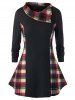 Plus Size Plaid Splicing Long Sleeve Tee