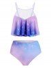 Mesh Panel Tie Dye Padded Tankini Set