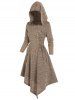 Lace Up Mock Button Hooded Asymmetrical Dress