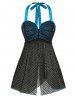 Plus Size V Notched Heart Mesh Halter Babydoll Set