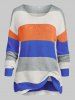 Plus Size Color Blocking Striped Drop Shoulder Tunic Sweater