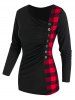 Plaid Panel Grommet Asymmetric T Shirt