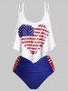 Overlay Flounces Ruched Heart American Flag Plus Size Tankini Swimwear