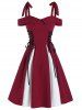Plus Size Cold Shoulder Hanky Hem Frilled Sailor Button Dress