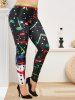 Christmas Musical Note Snowman Print Plus Size Leggings