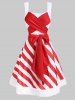 Christmas Striped Faux Fur Panel Bowknot Dress