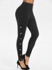Side Mock Button Pocket Pull On Skinny Leggings