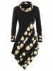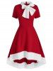 Christmas Bow Tie Collar Faux Fur Panel Dip Hem Dress