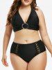 Plus Size Halter Lace Crochet Plunge Bikini Swimwear